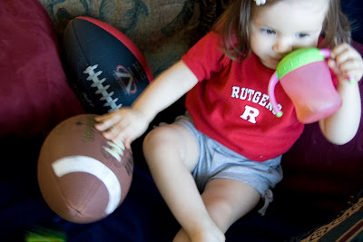 Erin was playing with that football all morning. Even took a nap with it.