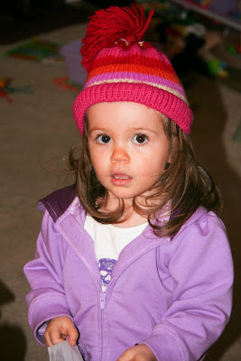 I have been collecting images of Erin in all her hats. Girl likes to wear hats! And if Chris wants to point his genetic blaming finger at me for that one, well I’ll take it. Hats are cool. Use to wear them all the time myself. Still have a couple funky hats, but most are of the practical and warm variety now. Hmm, will have to remedy that situation at some point. More funky hats for the people! Anyway, Erin loves to wear random hats around the house. She’s also obsessed with her bike helmet. Shocking. This hat was pilfered off a stuffed dog that Kyle gave her. It always cracks us up when she wears it. She looks like a stoned snow-boarder, or one of the McKenzie Brothers.