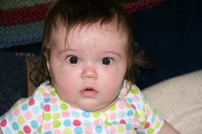 Erin is 5 months old today. And how did she choose to celebrate? She finally got that big toe in her mouth and then she puked on me. oh yeah, good times.